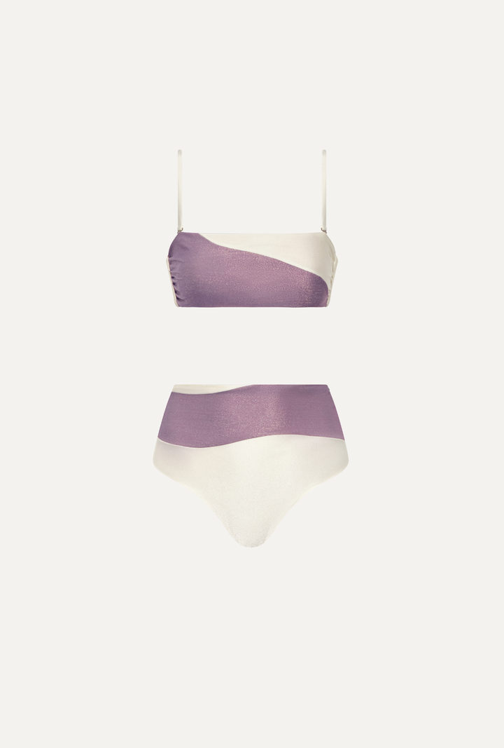 Top de bikini tipo bandeau, forma ondulada en el frente. Tiras ajustables y removibles que permiten un fit personalizado. Pads removibles. Amarre en espalda.